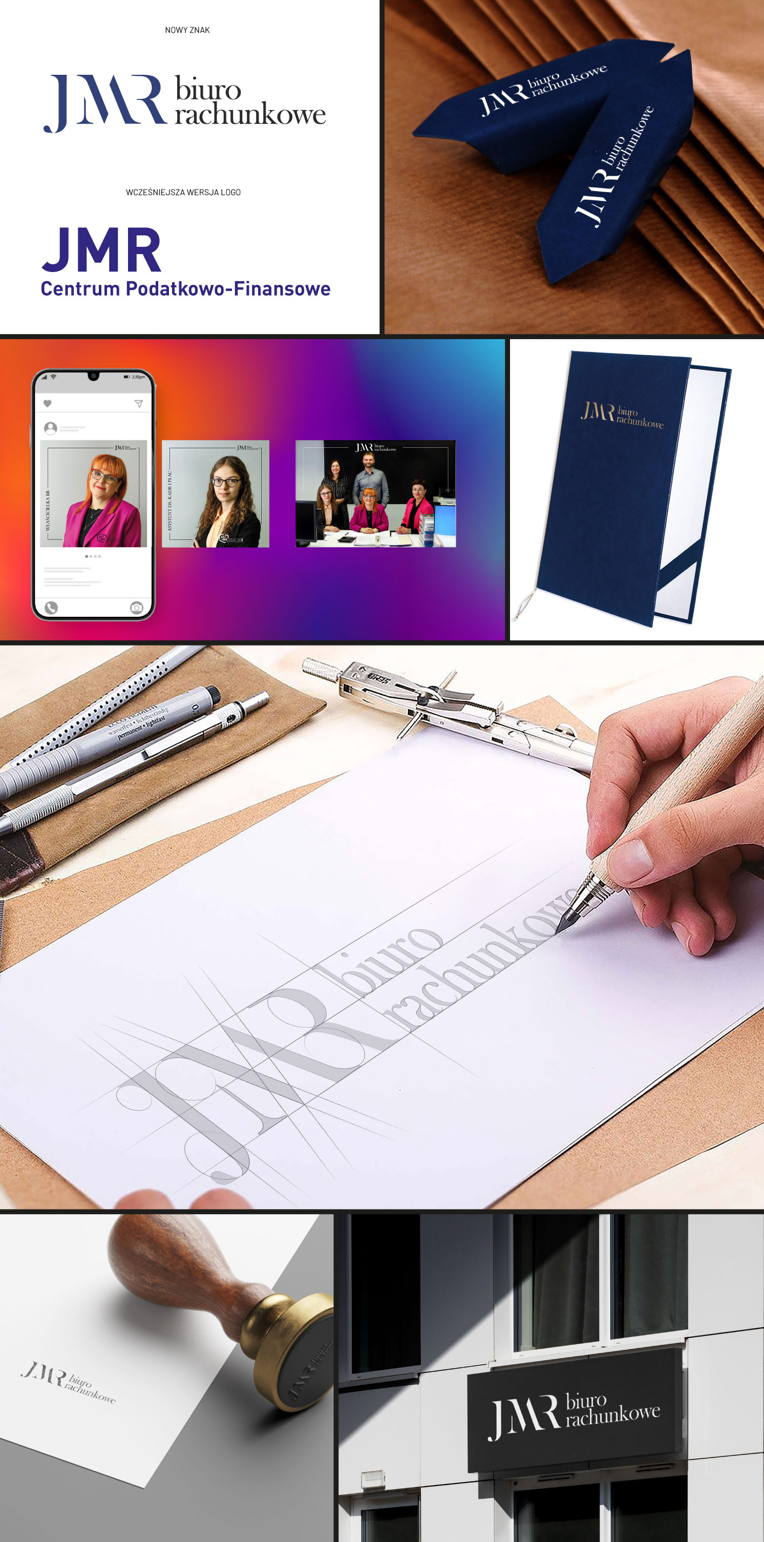 Dziesięciolecie działalności biura rachunkowego JMR stało się idealną okazją do przeprowadzenia kompleksowego rebrandingu, który objął wszystkie obszary identyfikacji wizualnej firmy. Nowe logo, zaprojektowane z wykorzystaniem eleganckiej typografii w intensywnym kolorze granatowym, w połączeniu z klasycznym krojem pisma w części opisowej, buduje wizerunek stabilnej i godnej zaufania instytucji finansowej. Modernizacja objęła pełną komunikację marki - od SM, przez oznakowanie siedziby i podświetlany kaseton, aż po dedykowaną linię materiałów promocyjnych. W nowej identyfikacji wizualnej szczególną uwagę zwraca minimalistyczna forma znaku JMR, która doskonale odzwierciedla kluczowe wartości firmy: profesjonalizm, rzetelność i ekspercką wiedzę z zakresu finansów i rachunkowości. Konsekwentne wdrożenie nowej identyfikacji we wszystkich punktach styku z klientem pozwoliło zbudować spójny, nowoczesny wizerunek marki,